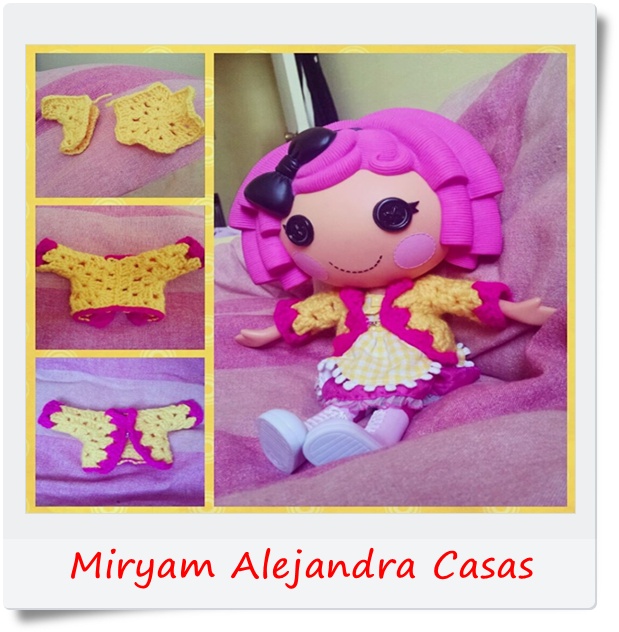 Aquí lo pueden ver en un talle muy pequeño, con colores delicados. Precioso! Ideal para regalar a hijas y nietas para que vistan sus muñecas.
