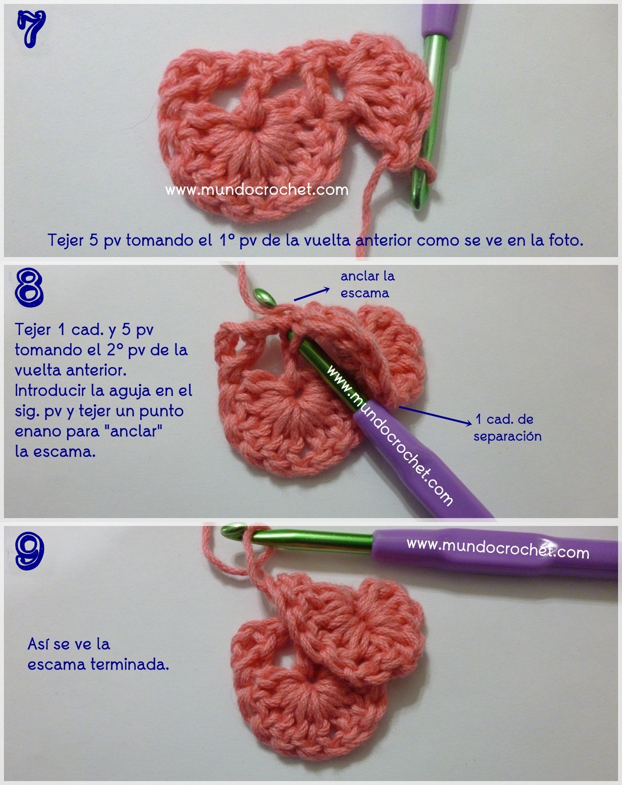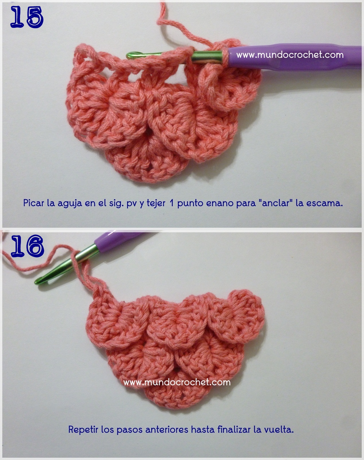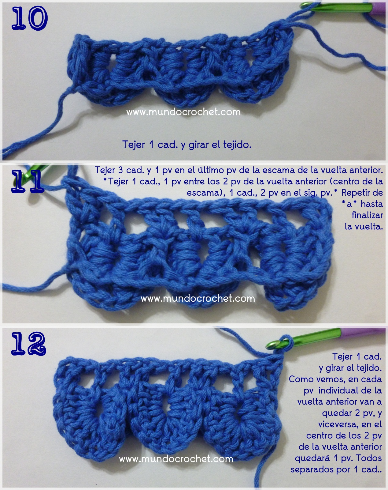 *Cerramos con un punto enano tejido tomando la última cadena de subida según el punto.