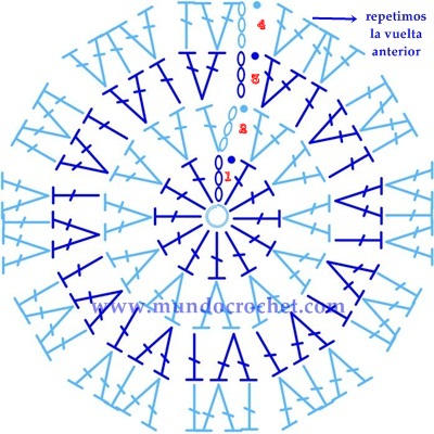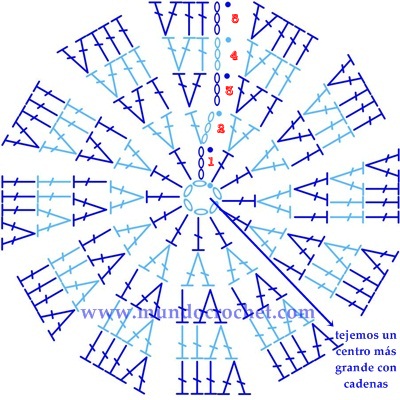 La cantidad de puntos de la 1º vuelta dependerá del punto con el que tejamos nuestro círculo:
