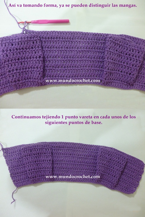 *punto vareta: subimos con 2 cadenas (en vez de 3).