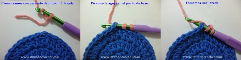 6-Comenzar sin cadenas, este forma de iniciar los puntos se denomina en inglés “standing stitches” (puntos de pie) y se utiliza cuando cambiamos de color o hebra.