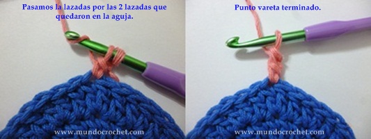 *punto vareta: subimos con una cadena y tejemos un medio punto + 1 cadena.