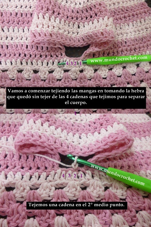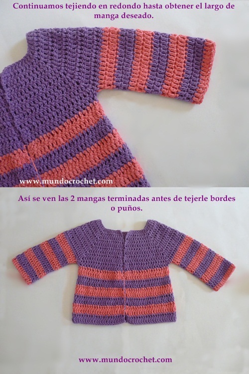 Como tejer un saco-campera-cardigan-chambrita a crochet o ganchillo paso a pasoEn los posts anteriores vimos cómo tejer el canesú y cómo tejer el cuerpo de un saquito, camperita, cardigan o chambrita a crochet. Hoy vamos a ver cómo tejer las mangas.