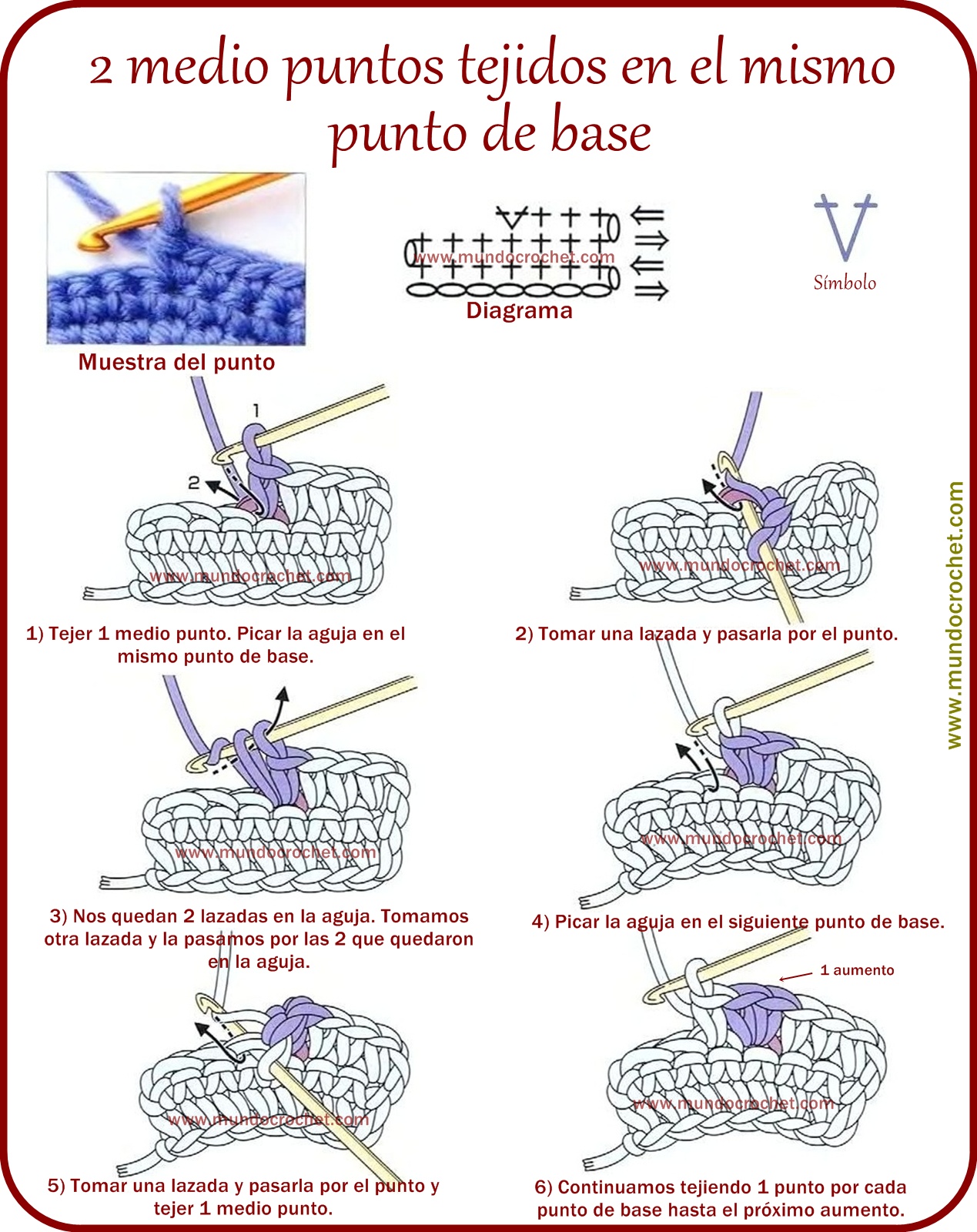4-Cada vez que tejamos 2 puntos en un mismo punto estamos tejiendo un AUMENTO.