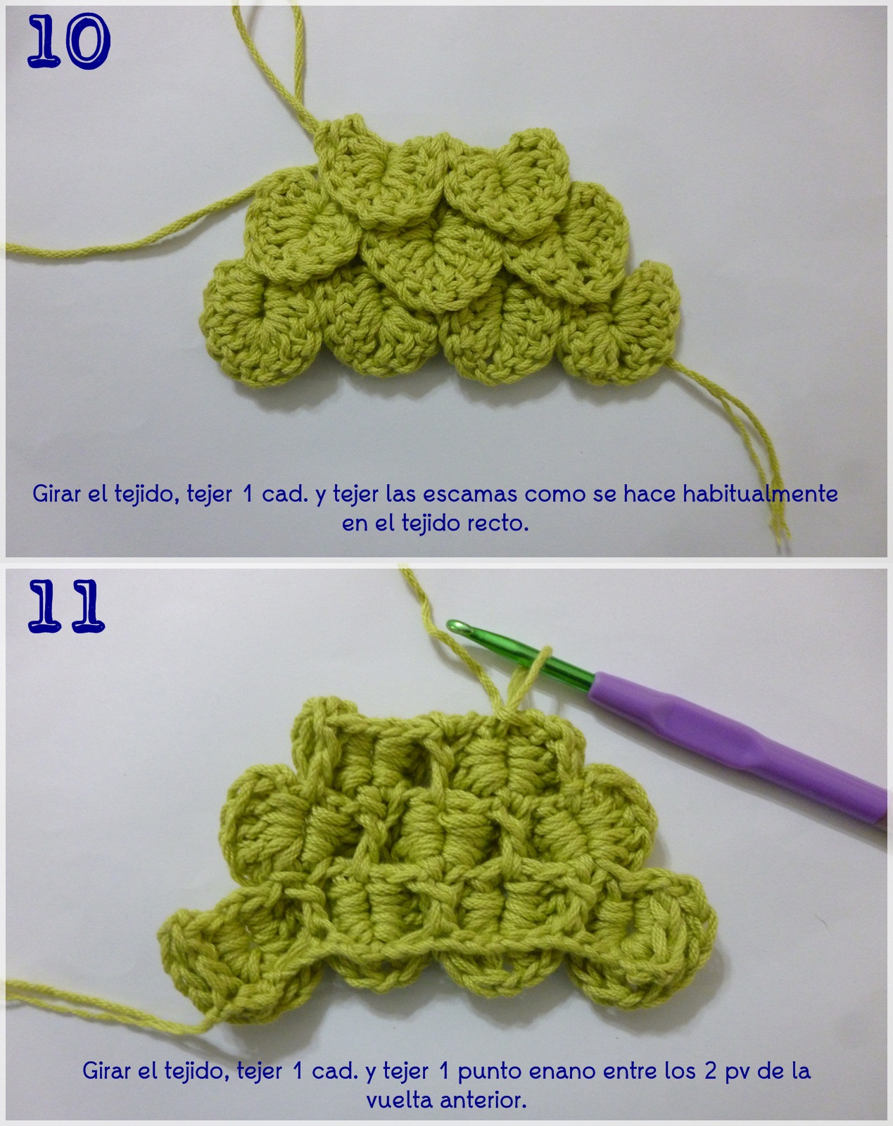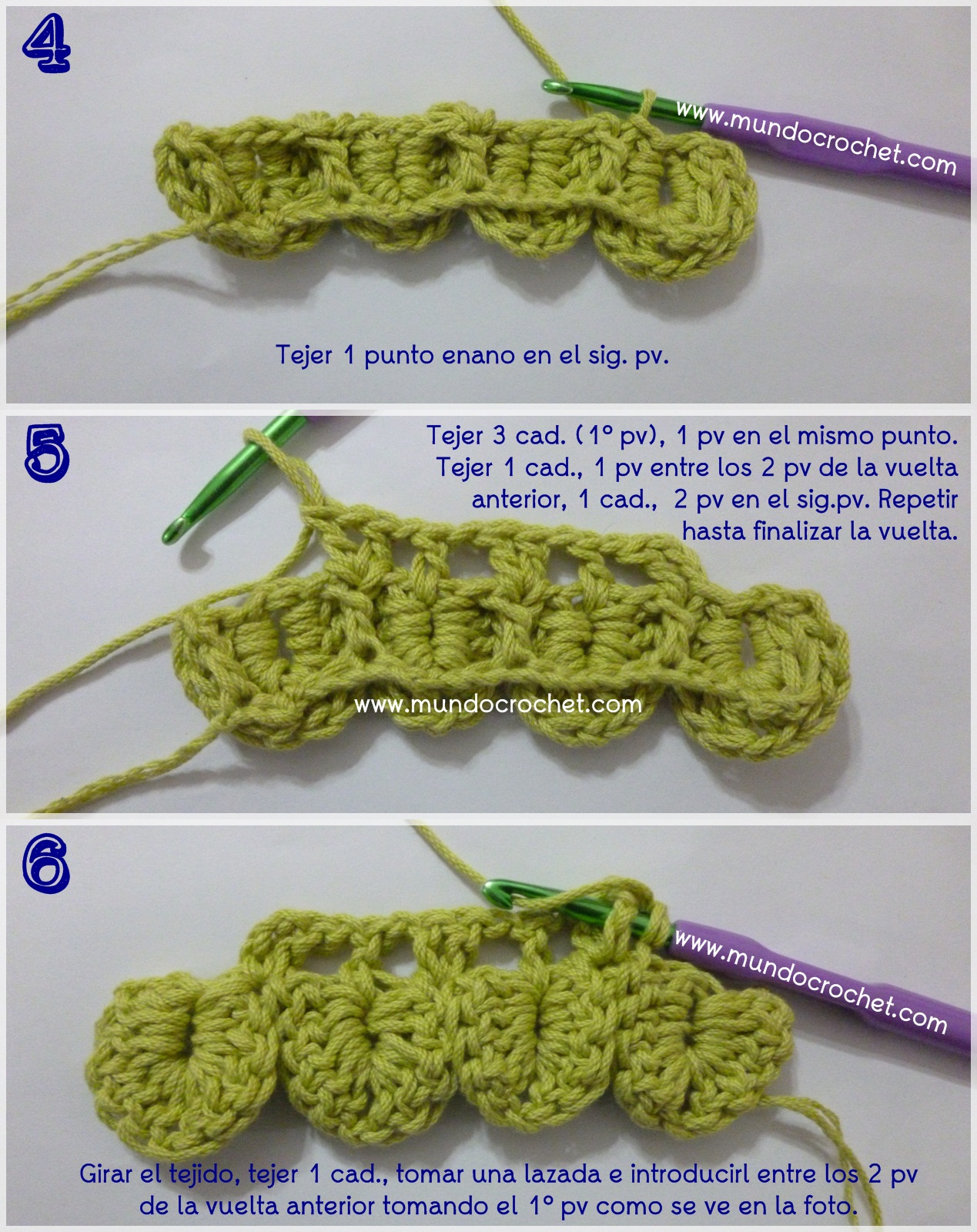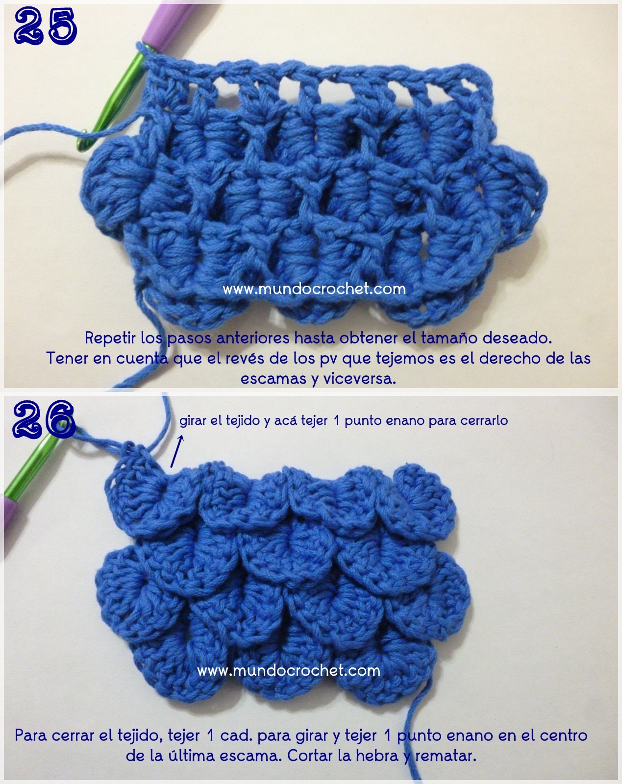 *Cerramos con un punto enano tejido tomando la última cadena de subida según el punto.