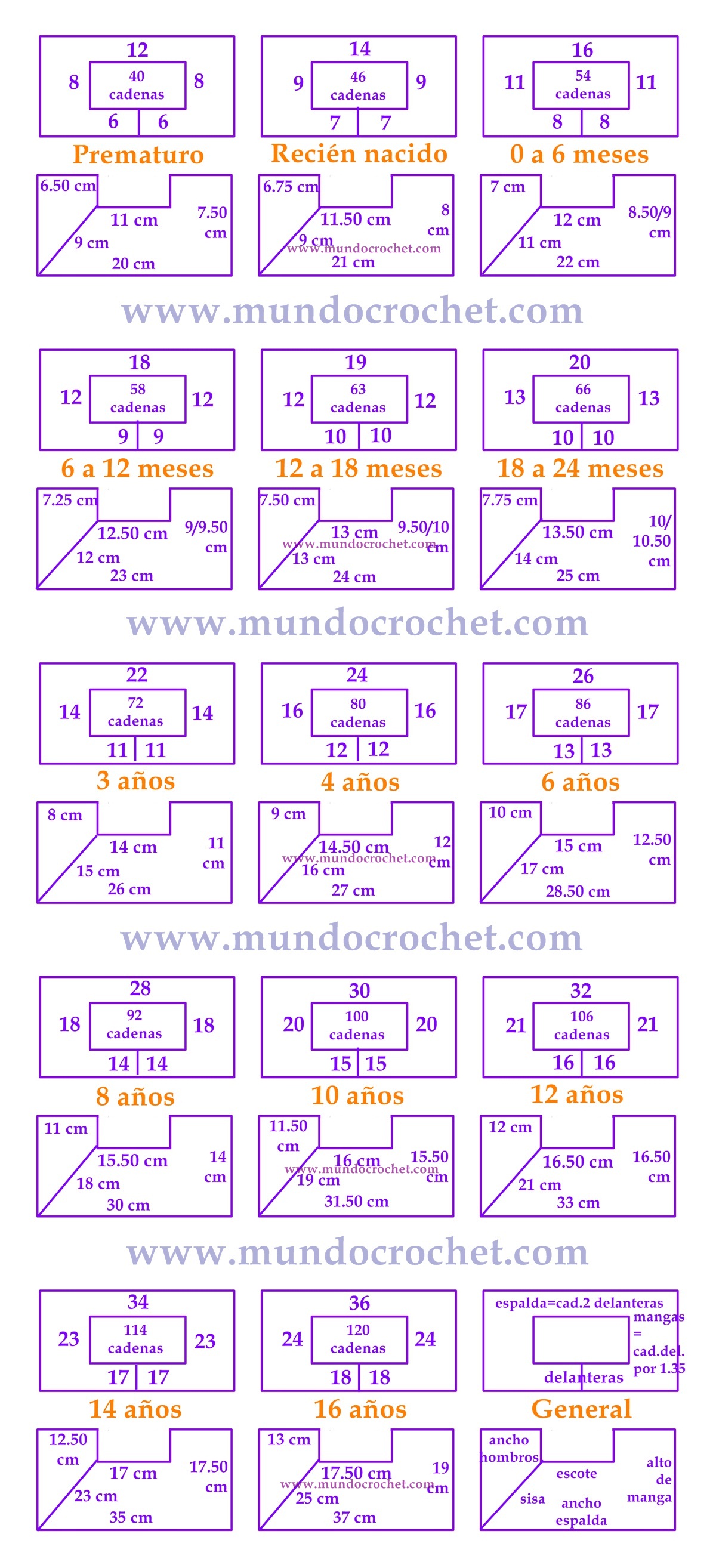 Siempre recuerden que en crochet no hay una receta mágica, y el resultado final va a depender del grosor del material que usemos, de la aguja que empleemos y de la tensión con la que tejamos.