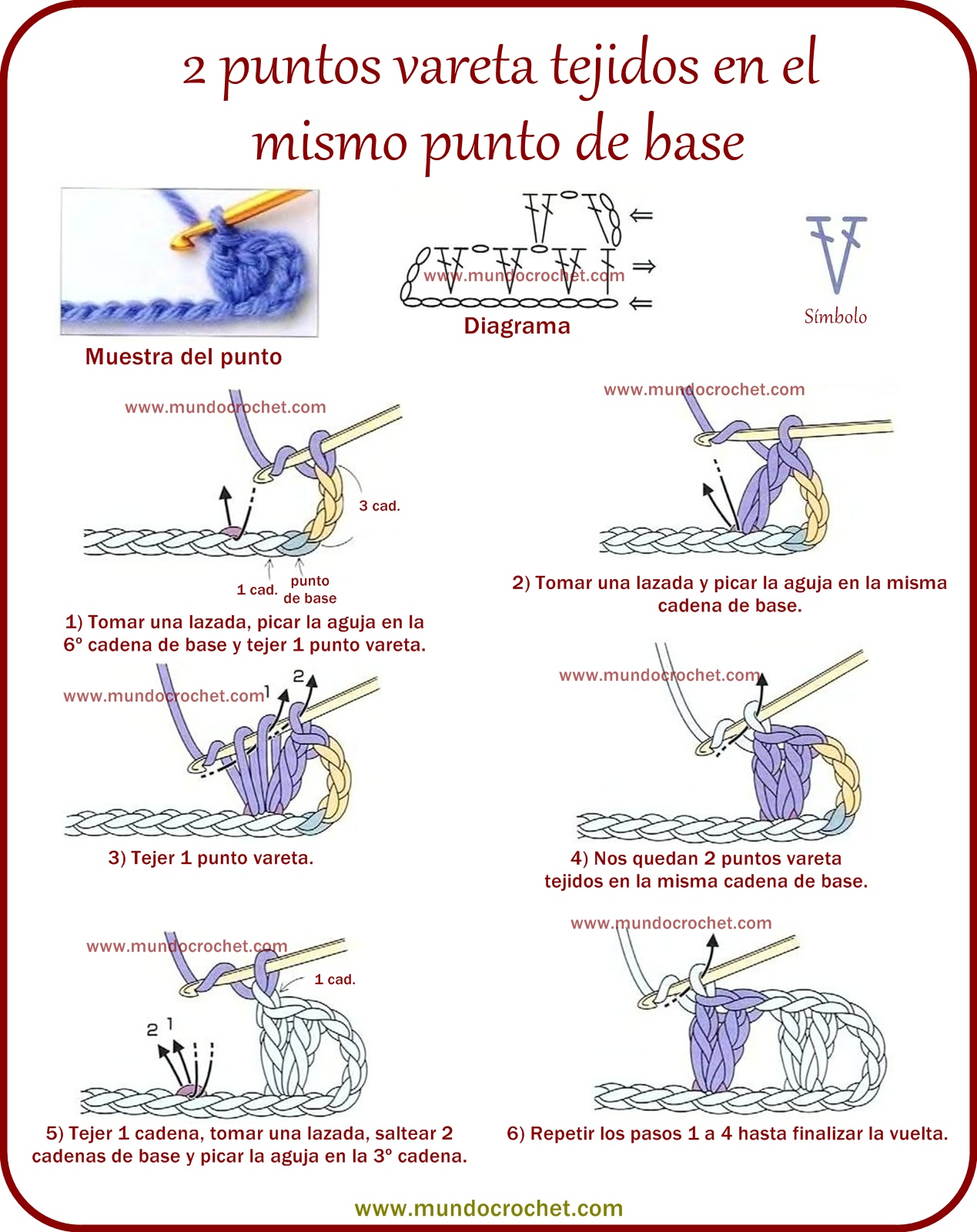 2 puntos vareta tejidos en el mismo punto de base a crochet o ganchillo