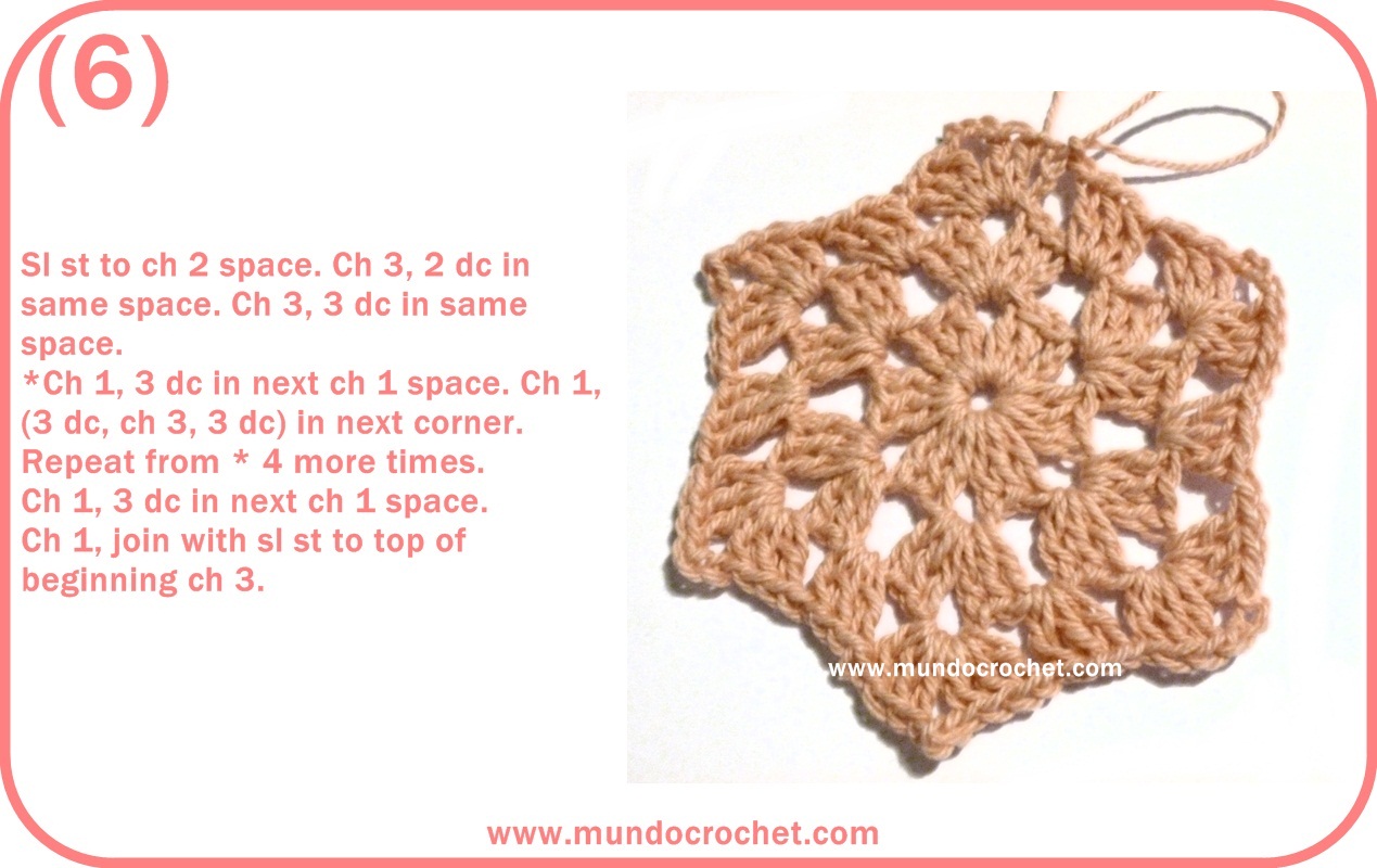 In the case that want to modify several sides at once, you just have to continue crocheting in 3 of the 6 sides of the hexagon.