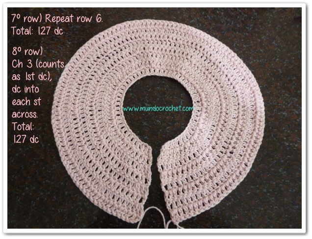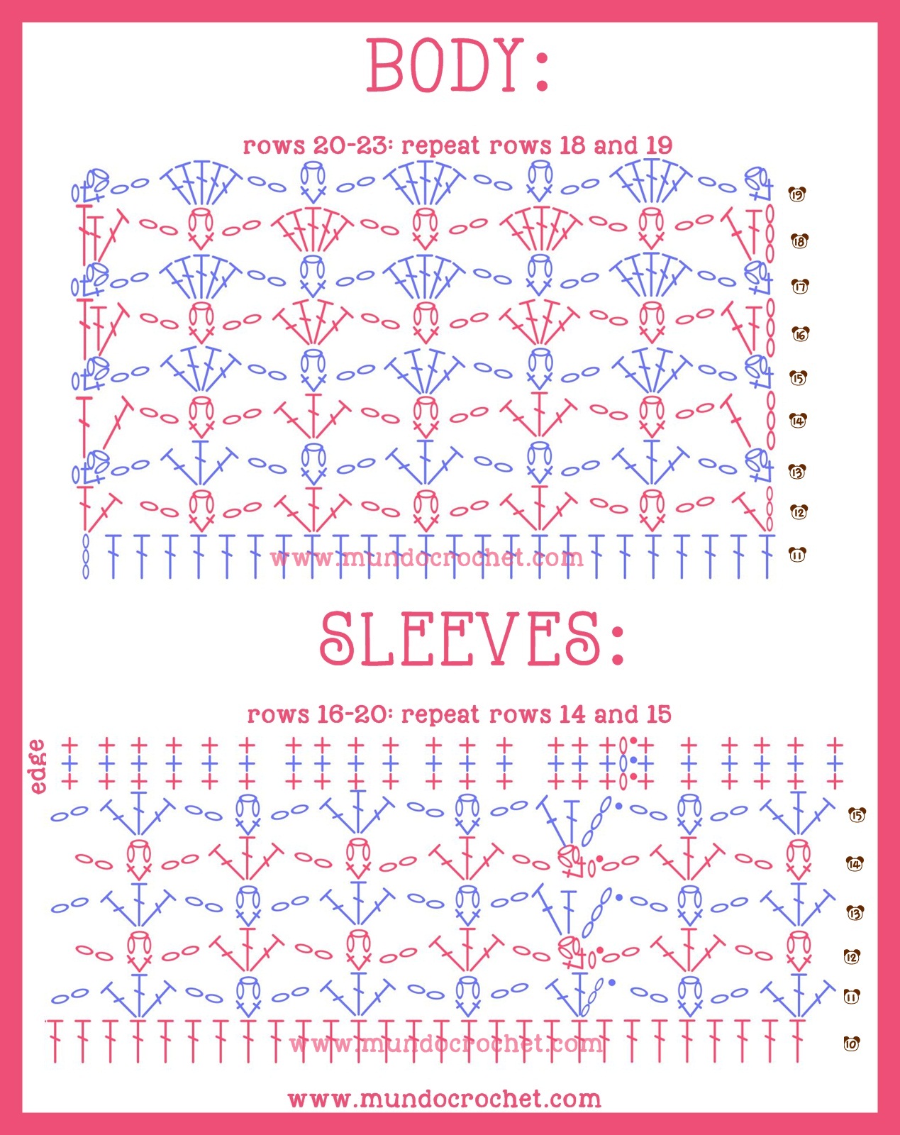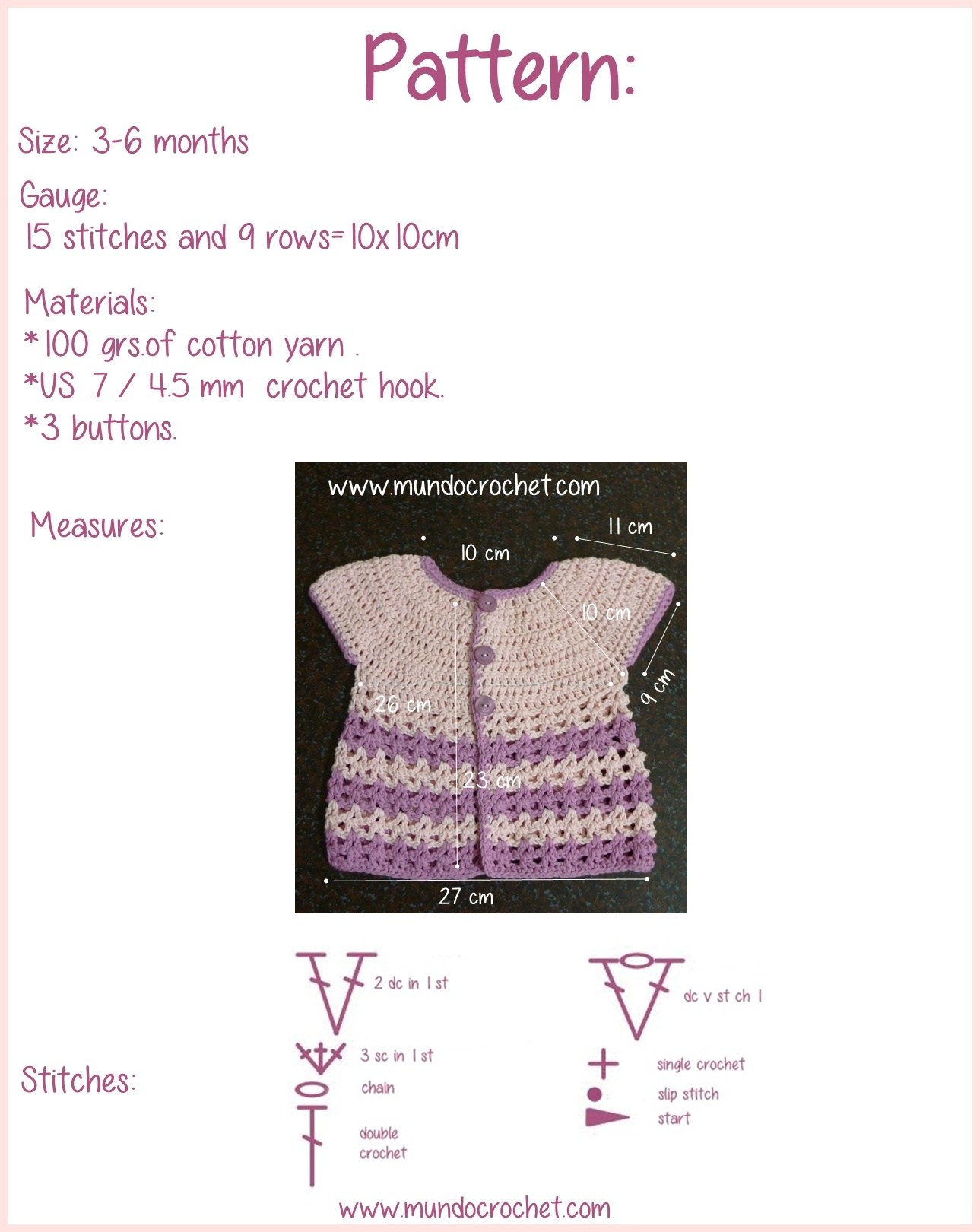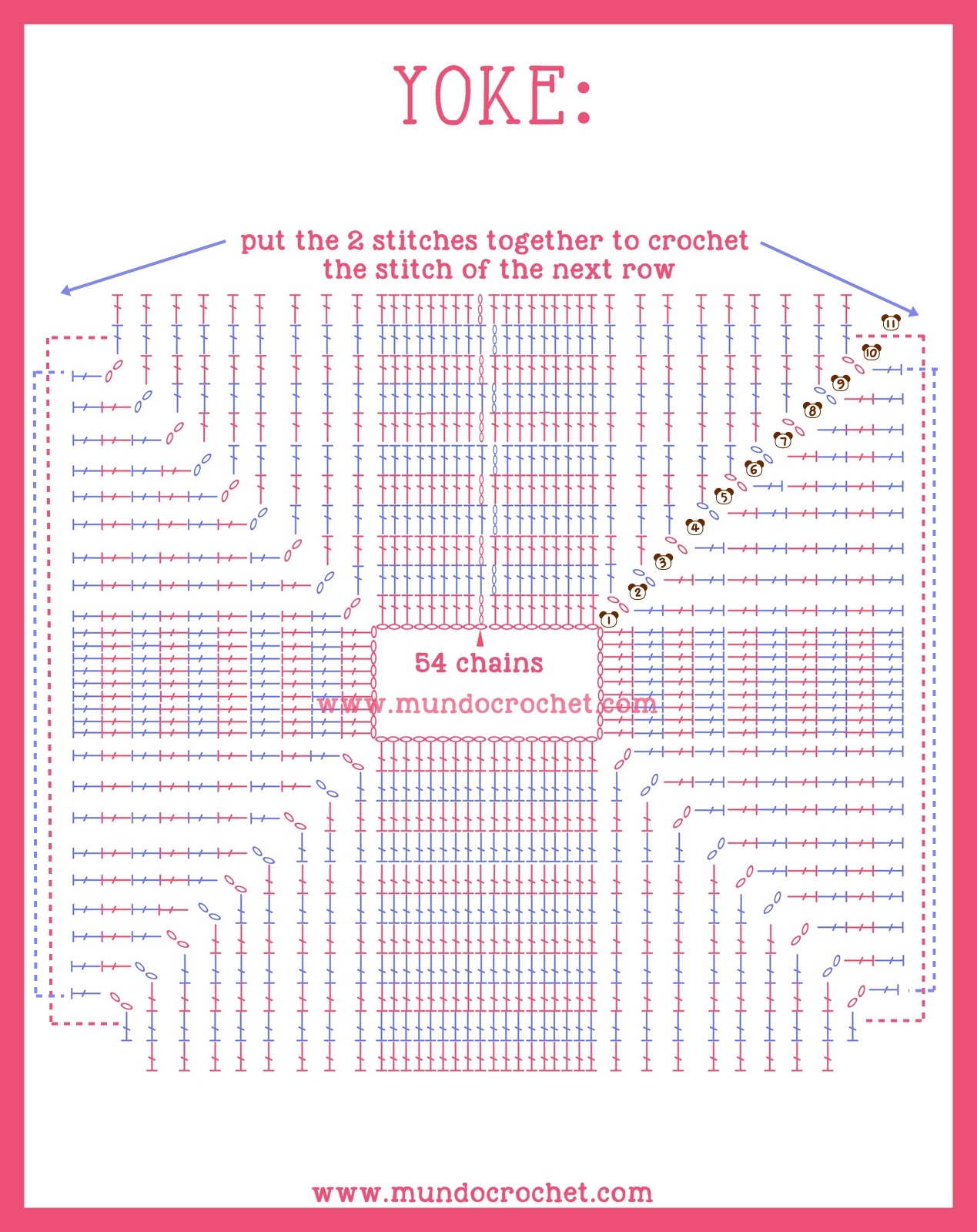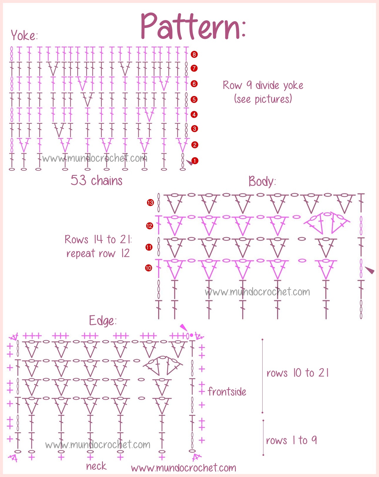 First you crochet the yoke and then the body. It´s a very feminine and colorful project.