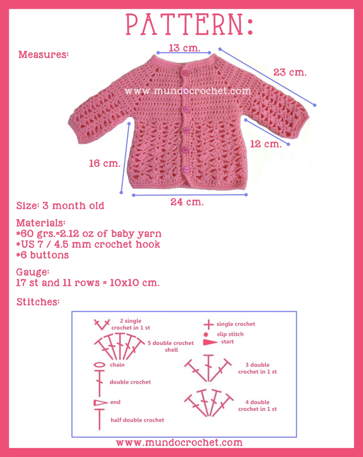 You can see the tutorial in the post of the Little girl crochet cardigan.