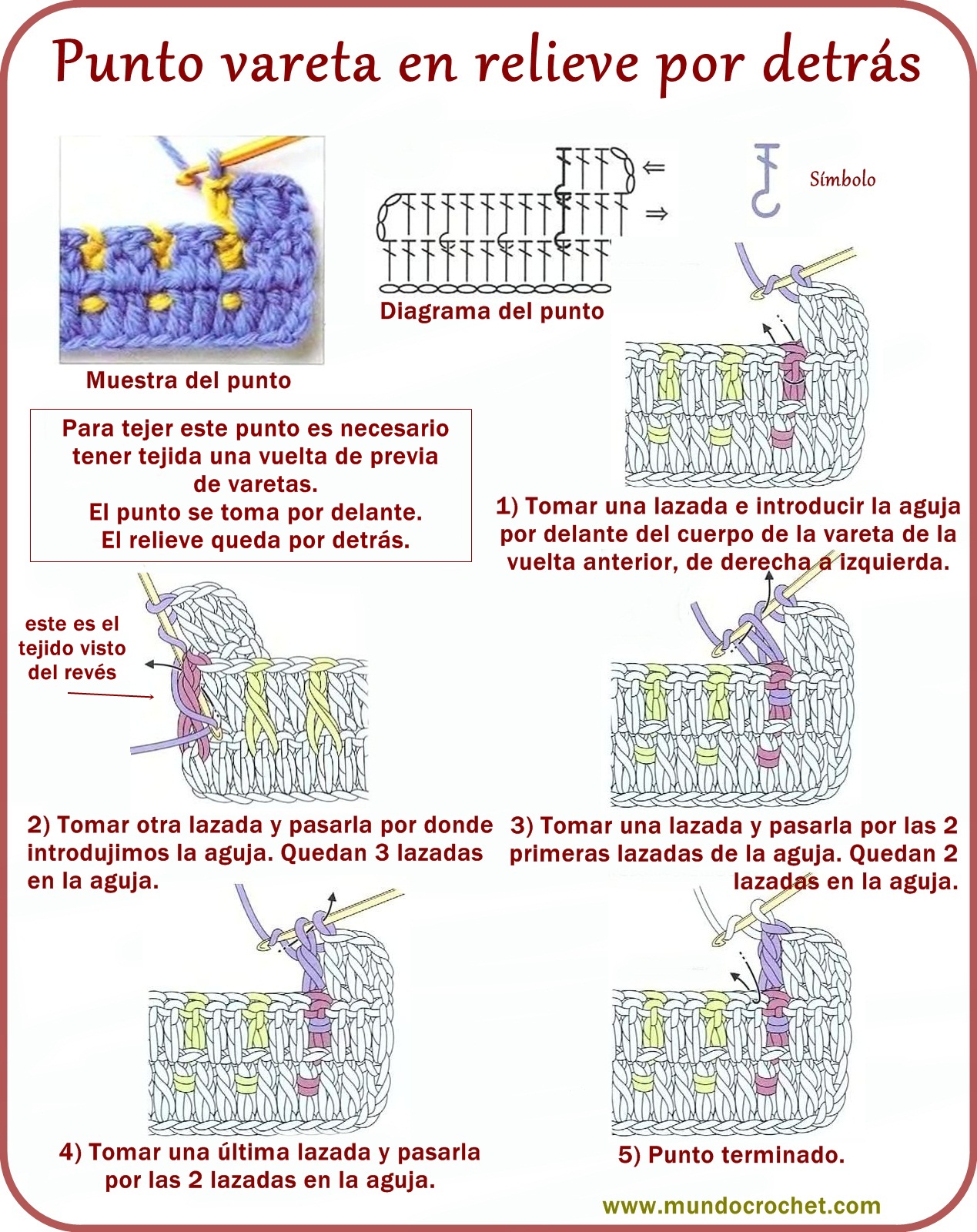 Se hacen igual que si estuvieras tejiendo los aumentos en el punto vareta tradicional, lo que varía es que para tejer los puntos de aumento vas a tomar el cuerpo del punto de base, ya sea por delante o por detrás, pero el procedimiento es el mismo.