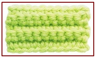 ![]() | ![]() | punto vareta tomando sólo la hebra de atrás | double crochet in the back loop only | Puntos canalé: tomando sólo la hebra de adelante o de atrás al tejer |