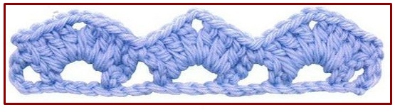 ![]() | ![]() | punto abanico de varetas con picot | 5 double crochet shell +picot | |