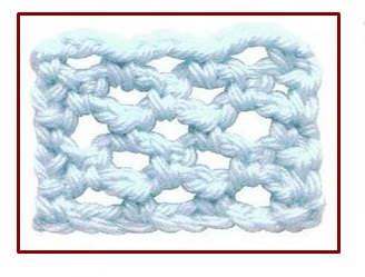 ![]() | ![]() | puntos vareta doble cruzados con 2 cadenas | crossed (tc, tc, ch 2, tc, tc) | |