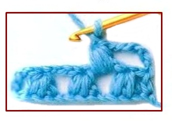 | 2 punto piña de 3 media varetas | 2x3 half double crochet clusters | 2 punto piña de 3 media varetas | ||