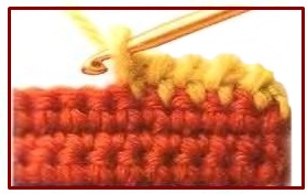 ![]() | ![]() | punto vareta tomando sólo la hebra de atrás | double crochet in the back loop only | Puntos canalé: tomando sólo la hebra de adelante o de atrás al tejer |