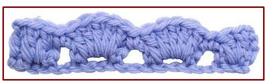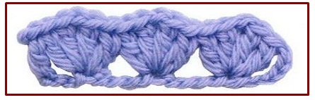 ![]() | ![]() | punto abanico de varetas con picot | 5 double crochet shell +picot | |