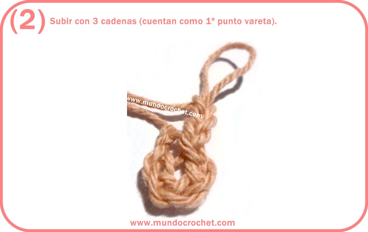 Tejer 1 pv en la 5º cadena y en las siguientes 7 cadenas de base. En total quedan 9 pv (estos puntos van a formar la delantera).